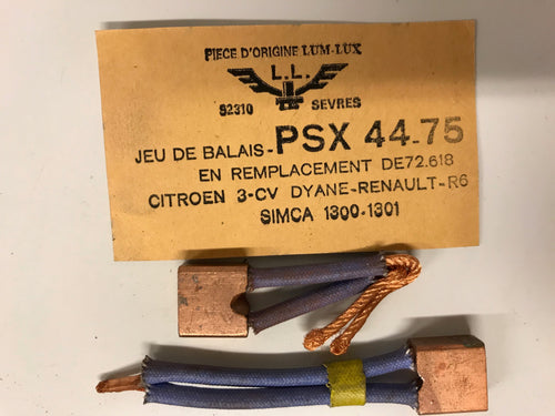 Jeu de balais (charbon) PSX44-75 remplace 72.618 pour 2CV AMI6/8 Dyane Visa R4..